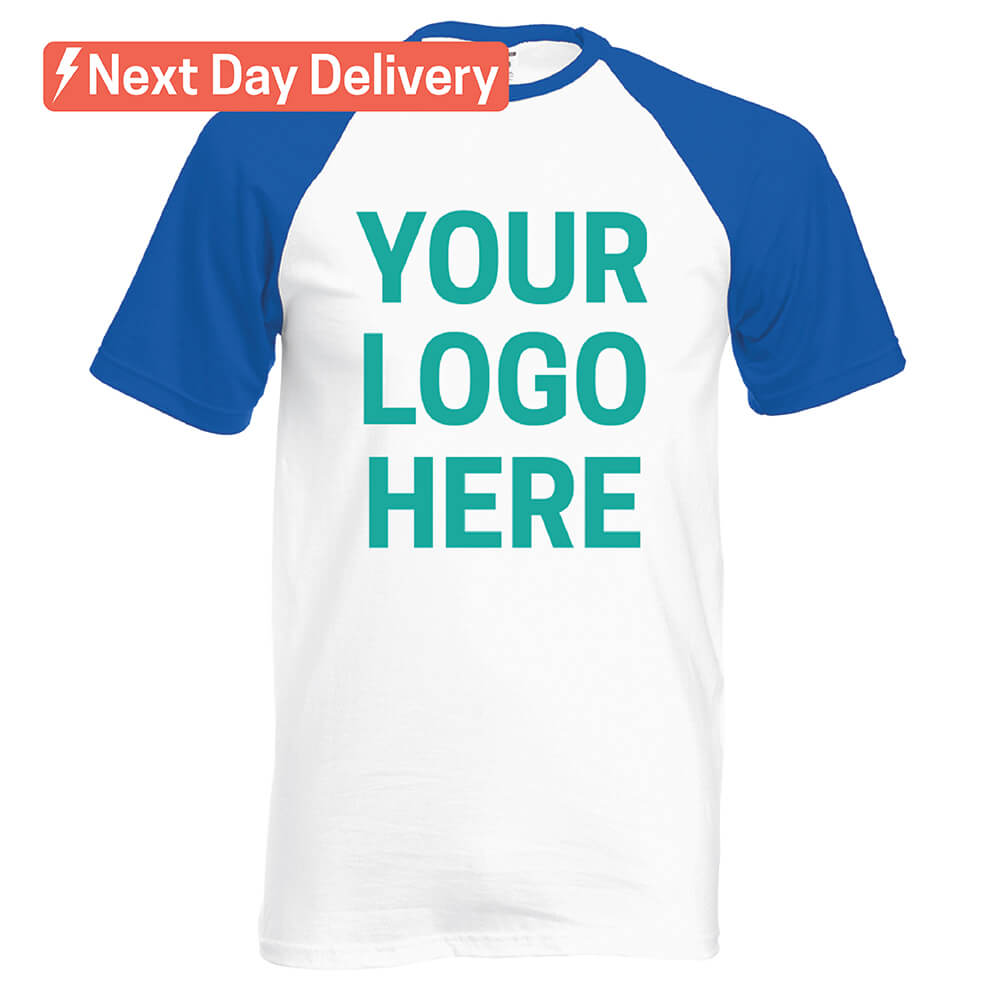 Tight deadline? No problem – we now offer our classic white & blue Baseball Tees with same day printing for next day delivery!